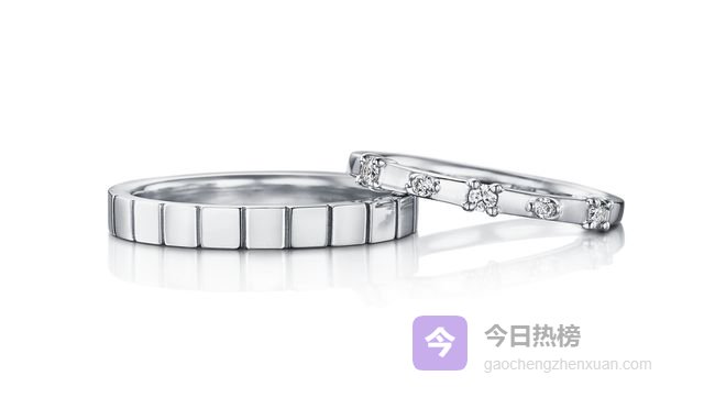 璀璨花路:女戒上散落镶嵌的多颗小钻,象征着婚后接踵而来的“幸福之花”,寓意生活中的小确幸连绵不断。