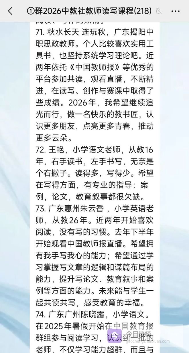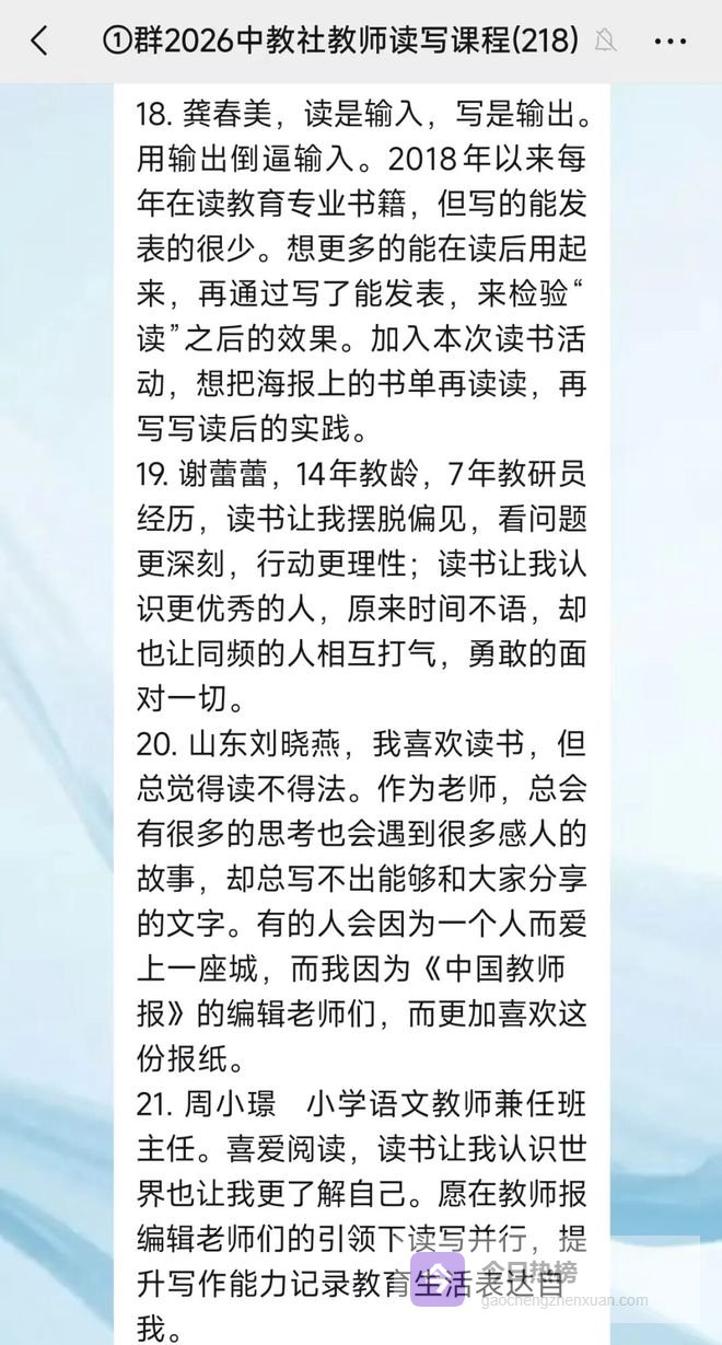 2月9日,中教社教师读写高阶课程正式上线,来自天南海北的数百位老师,在这里开启了他们的读写精进之路。我们聆听了他们最真挚的心声: