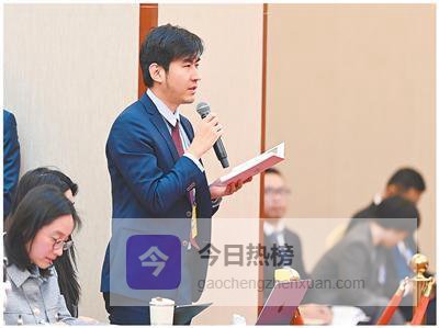 3月7日,人民日报记者李君强在海南代表团开放团组会议上提问。 封 烁摄(人民视觉)