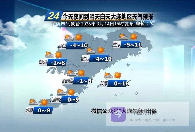 昨天半夜到今天白天我市出现降水,其中长兴岛、瓦房店出现短时小雪,其它地区均以小雨为主,降雨的同时冷空气也随之而来,气温相比昨天有所下降,截至今日15时,主城区各站最高气温普遍在5~8℃。预计今天夜间多云,市区气温在0~4℃.