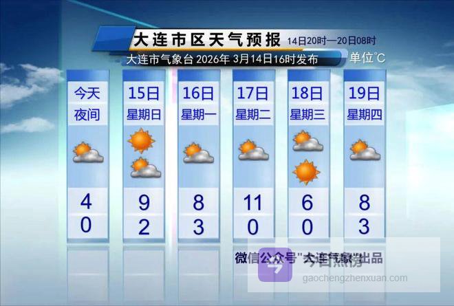 西部沿海偏北风5到6级转西南风5到6级,南部沿海偏北风5到6级转偏西风5到6级,东部沿海偏北风5到6级,大连市各县市区偏北风4到5级转偏西风4到5级。