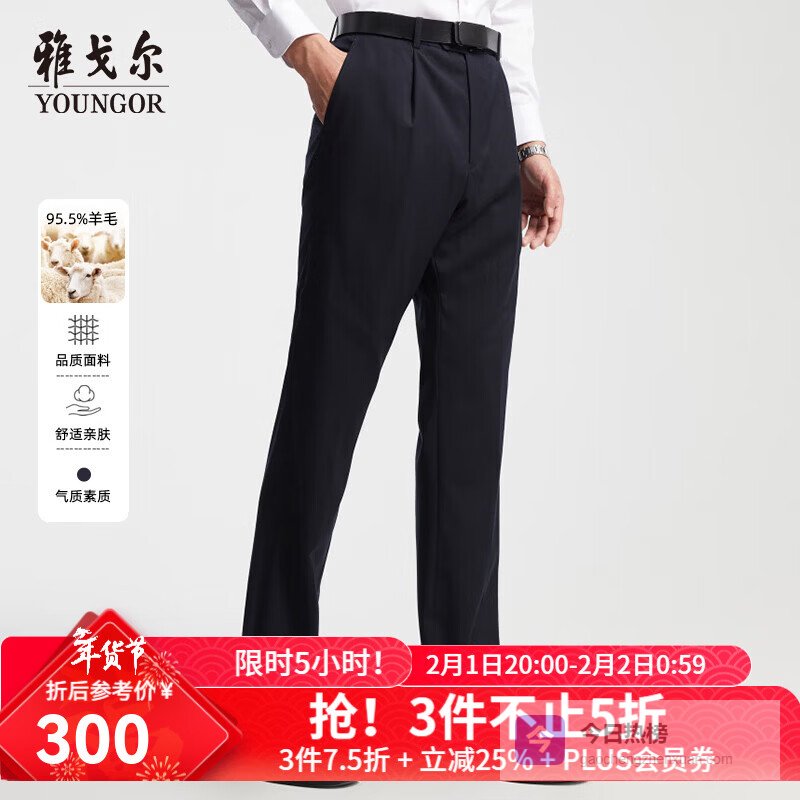 雅戈尔(YOUNGOR)套西裤子男050款西服裤西装裤西裤羊毛材质秋冬季保暖舒适 藏青 40 185/100A¥