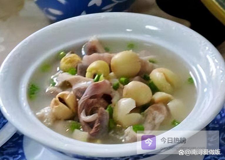 5. 放入芡实和莲子,继续小火慢炖40分钟,至食材软烂、汤色乳白。