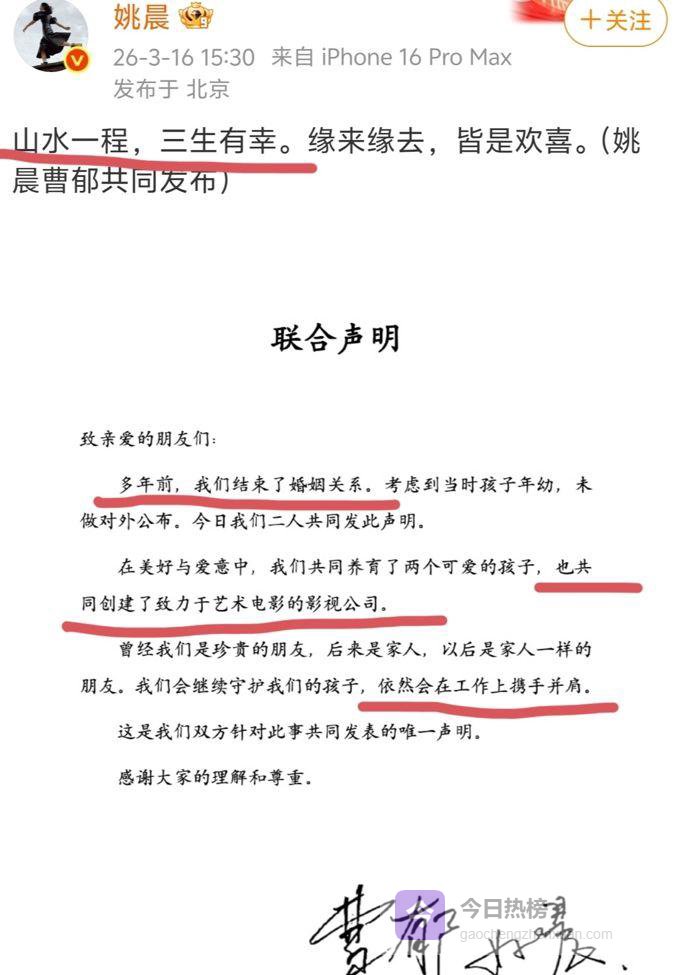 不得不说,看完姚晨这个离婚官宣,文案简直无懈可击。