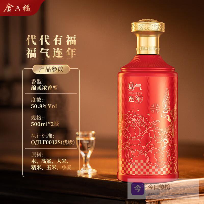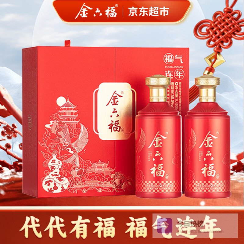 金六福福气连年 绵柔浓香型白酒 50.8度 500ml*2瓶 礼盒装【喜宴送礼】¥