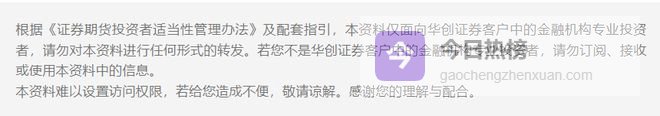 本资料来自华创证券研究所已经发布的研究报告,若对报告的摘编产生歧义,应以报告发布当日的完整内容为准。须注意的是,本资料仅代表报告发布当日的判断,相关的分析意见及推测可能会根据华创证券研究所后续发布的研究报告在不发出通知的情形下做出更改。华创证券的其他业务部门或附属机构可能独立做出与本资料的意见或建议不一致的投资决策。本资料所指的证券或金融工具的价格、价值及收入可涨可跌,以往的表现不应作为日后表现的显示及担保。本资料仅供订阅人参考之用,不是或不应被视为出售、购买或认购证券或其它金融工具的要约或要约邀请。订阅人不应单纯依靠本资料的信息而取代自身的独立判断,应自主作出投资决策并自行承担投资风险。华创证券不对使用本资料涉及的信息所产生的任何直接或间接损失或与此有关的其他损失承担任何责任。