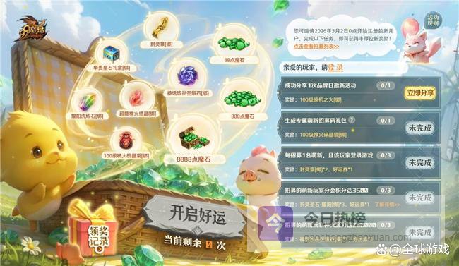 萌新与老友福利全面升级。全新上线的“跃升之旅”系统,让新手成长更加顺畅,回归玩家也能快速跟上版本节奏。更重磅的是,现在招募好友——无论是萌新还是回归玩家,双方均可领取丰厚奖励,招募者更有机会赢取18888点魔石、超能神火结晶[绑]等好运赠礼。