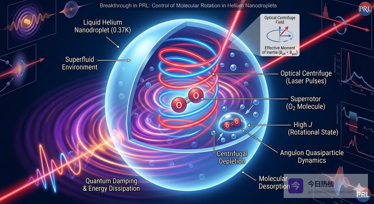 《Control of Molecular Rotation in Helium Nanodroplets with an Optical Centrifuge》成功展示了如何利用超快光学手段作为“手术刀”,在量子流体的深处精准拨动分子的转动。它不仅加深了我们对氦滴超流性的理解,也为未来在凝聚态物质中利用旋转自由度存储和传输量子信息开辟了新的想象空间。