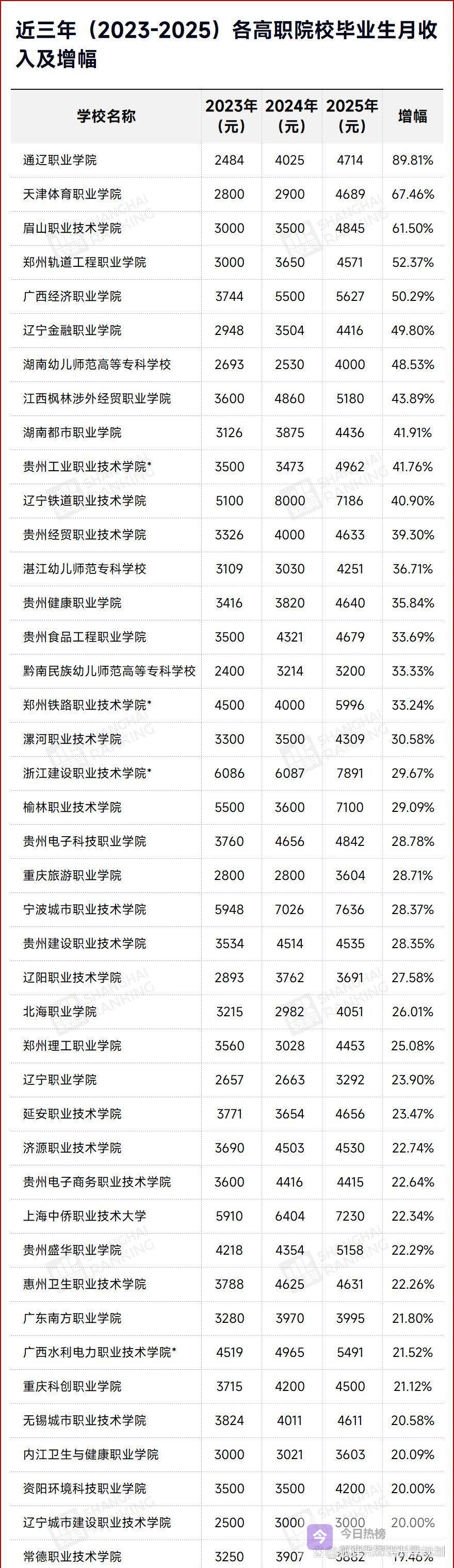 一、高职高薪不是个例:有人月入过万,200 + 院校集体涨薪很多人觉得 “高职月薪过万” 是少数案例,但数据不会说谎 —— 不仅有院校实现平均月薪破万,更有超 200 所高职的毕业生薪资连续三年稳步上涨,成为就业市场的 “黑马”。