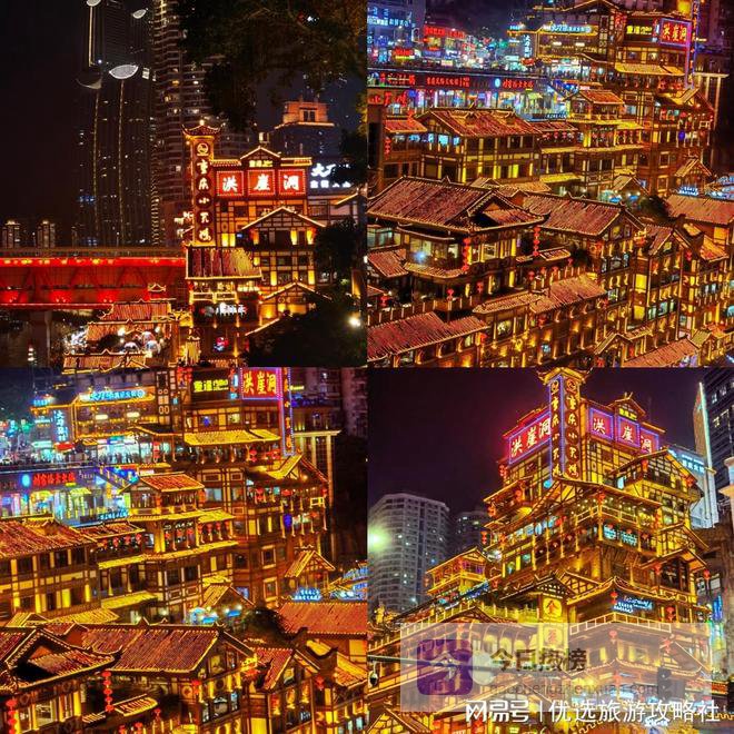 5. 洪崖洞:重庆的城市名片,吊脚楼建筑独具特色,夜景灯光璀璨,是必打卡的网红地标,随手一拍都是大片。