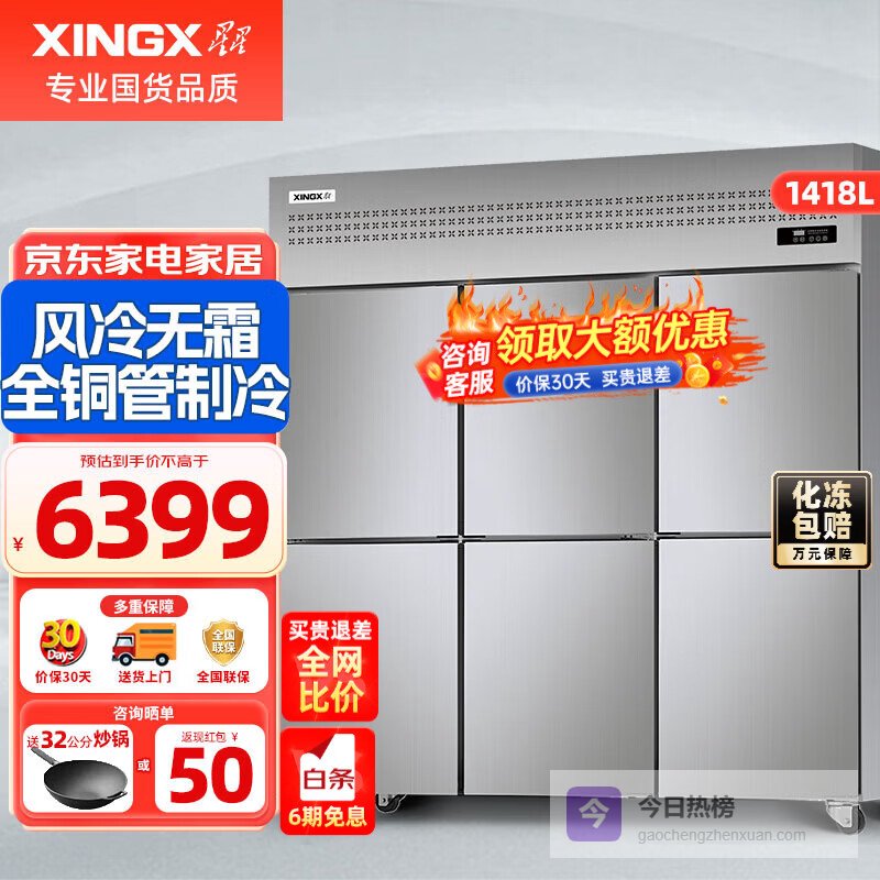 星星四门六门冰箱商用风冷铜管-18度立式冰柜冷藏冷冻饭店厨房后厨学校食堂冷冻冷藏冰柜后厨专用 六门风冷无霜全冷藏BC-1460FA¥
