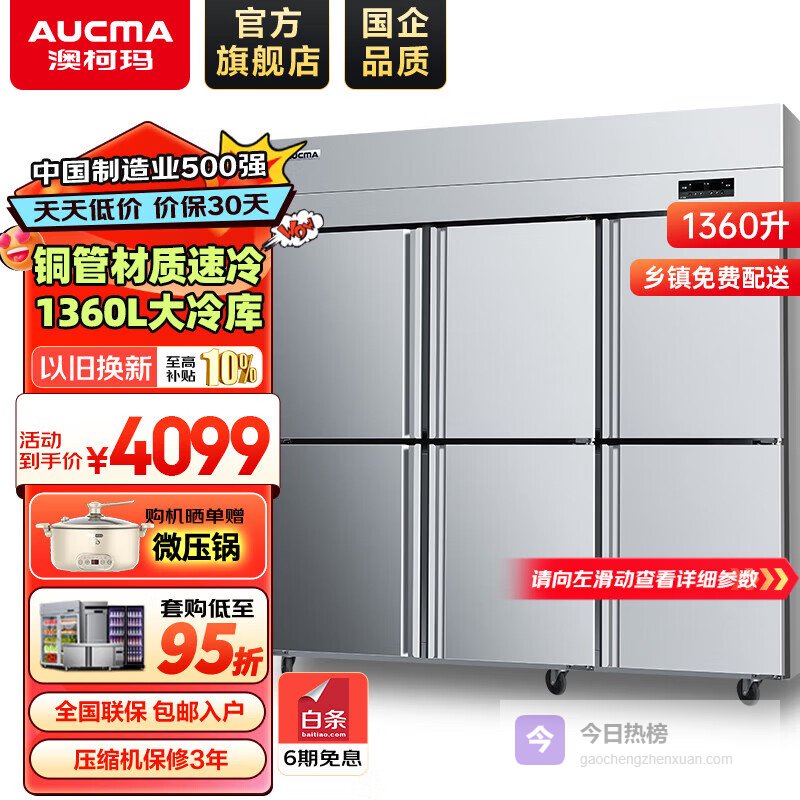 澳柯玛(AUCMA)四门冰箱商用冰柜立式冷冻柜六门冰箱大容量饭店食堂餐饮店保鲜柜冷柜后厨不锈钢厨房冰箱 -18℃低温款 1360升双温 铜管制冷¥