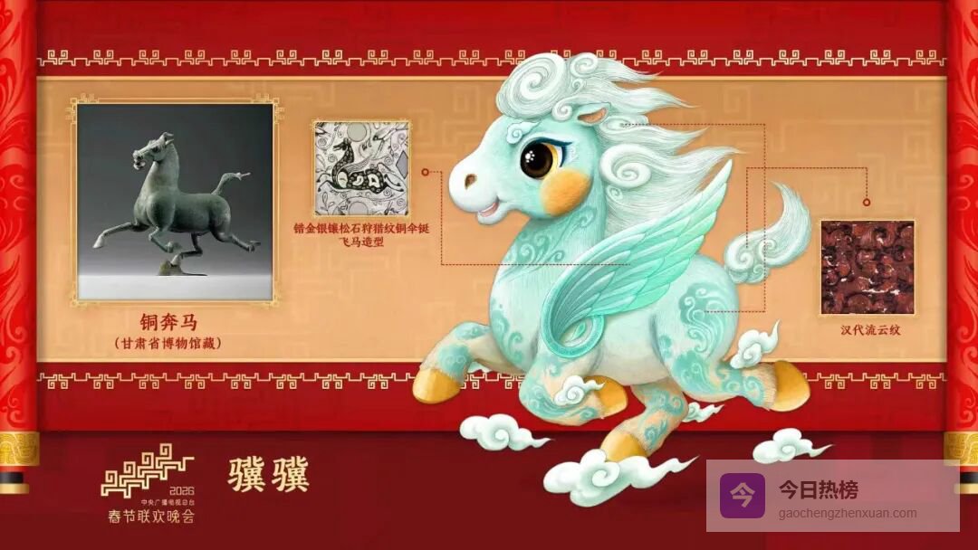 “骥骥”的设计灵感源自汉代天马。它的身姿参考国宝级文物铜奔马,翅膀借鉴错金银镶松石狩猎纹铜伞铤上的飞马造型。“骥骥”双翼舒展、腾云逐日的英姿,彰显奋发向上的精气神。
