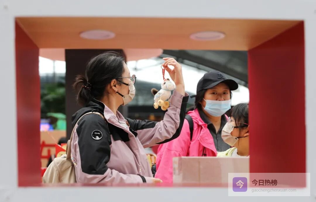 正在候车的王小姐拿起一款“金鬃披霞”毛绒包挂爱不释手:“颜色太喜庆了,摸起来软乎乎,挂在包上既有春节氛围感,又有‘势不可挡’的好彩头!”