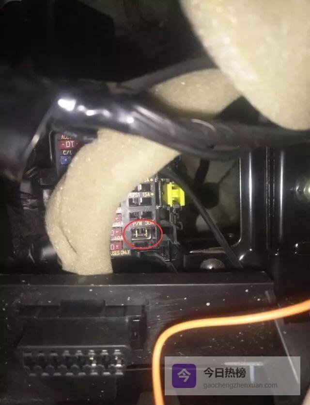 电源、ON、关锁输入三根线要分别送进保险盒。30A保险取电最稳,先拆下方向盘左下方的小盖板,抽掉右下角30A保险。
