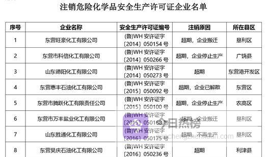东营市应急管理局发布公告,依法注销东营旺豪化工有限公司等8家危险化学品生产企业的安全生产许可证,以及广饶县东华加油站等7家危险化学品经营企业的经营许可证。此轮集中注销,标志着东营市危化领域又一次“清源”行动落地。