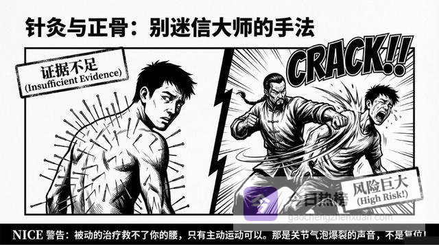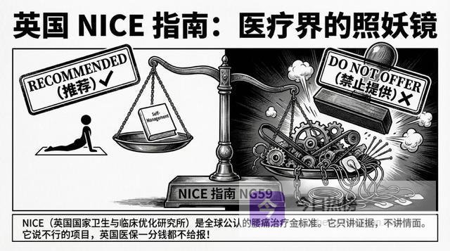 结果我发现了一个惊天大雷:某医院让我做的那些项目,在英国NICE指南(全球腰痛治疗金标准)里,全部都是"不推荐"或"无效"!