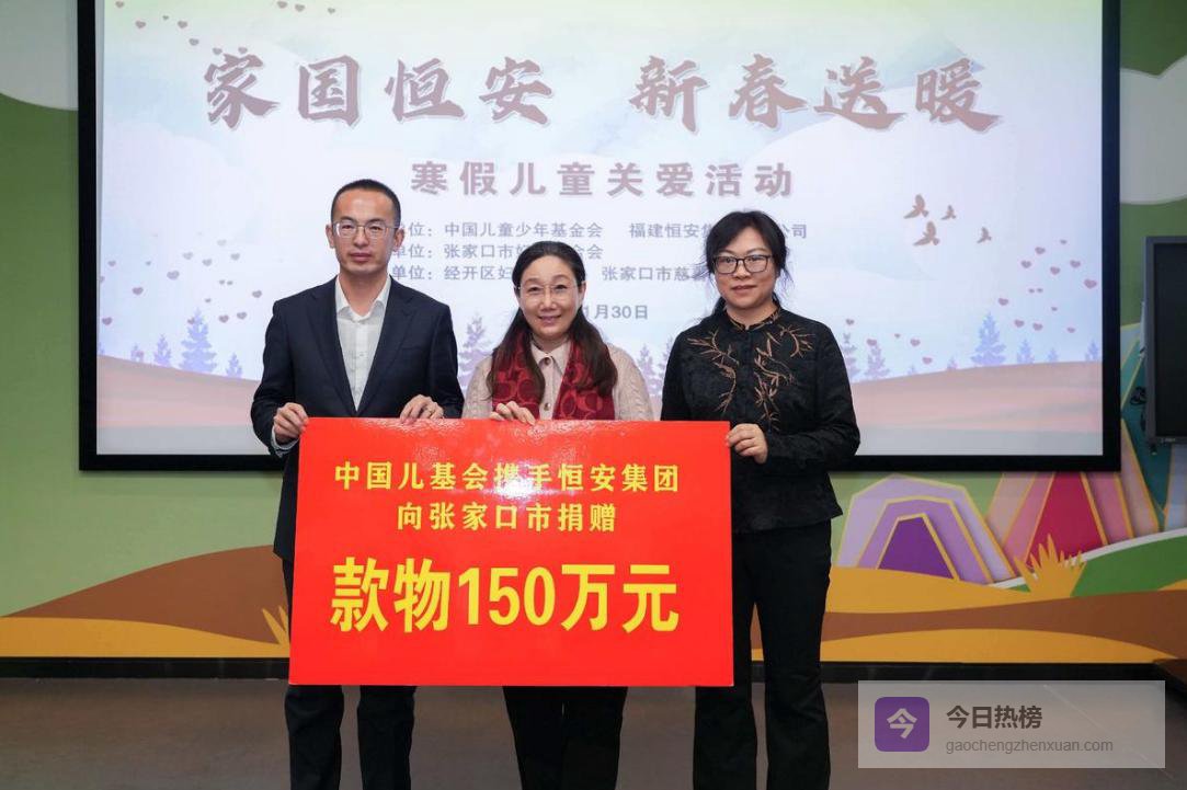 活动现场,中国儿基会携手恒安集团向张家口市捐赠款物共计150万元,与会嘉宾及爱心企业代表向参加活动的困境儿童发放了“新春关爱礼包”。