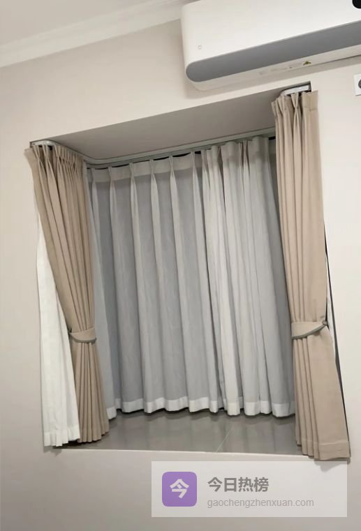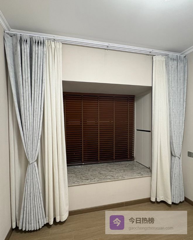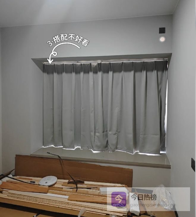 西安业主@田园都市:飘窗直接做布帘,没有窗帘盒以及两边墙体遮挡,几乎都得翻车。结果布帘还廉价,没有高温定型,导致整体翻车。