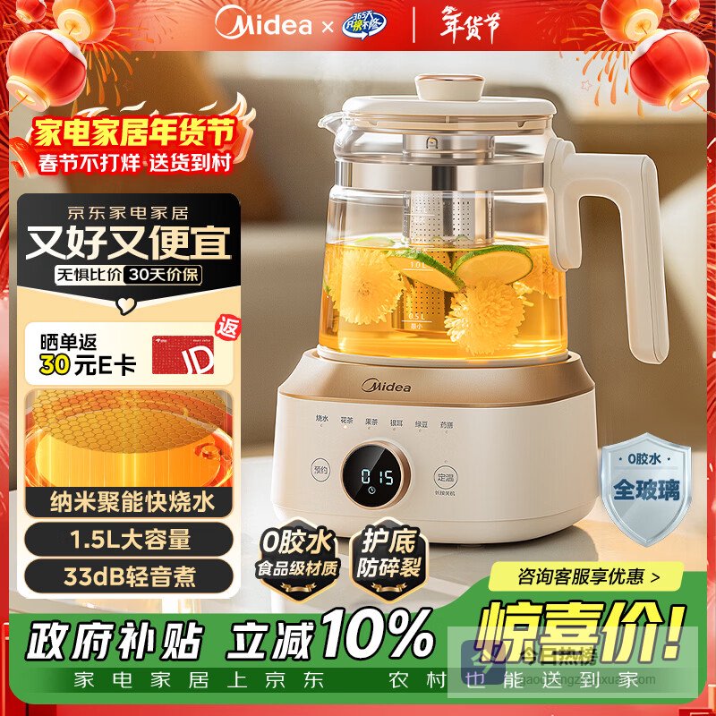 推荐热销款2:美的MK-YS15B201全玻璃养生壶热水壶