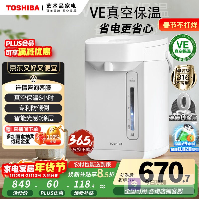 东芝(TOSHIBA) 电热水瓶饮水机9重安全保护 316L母婴级不锈钢 VE真空恒温 0涂层热水壶4升TP-40VRUC¥