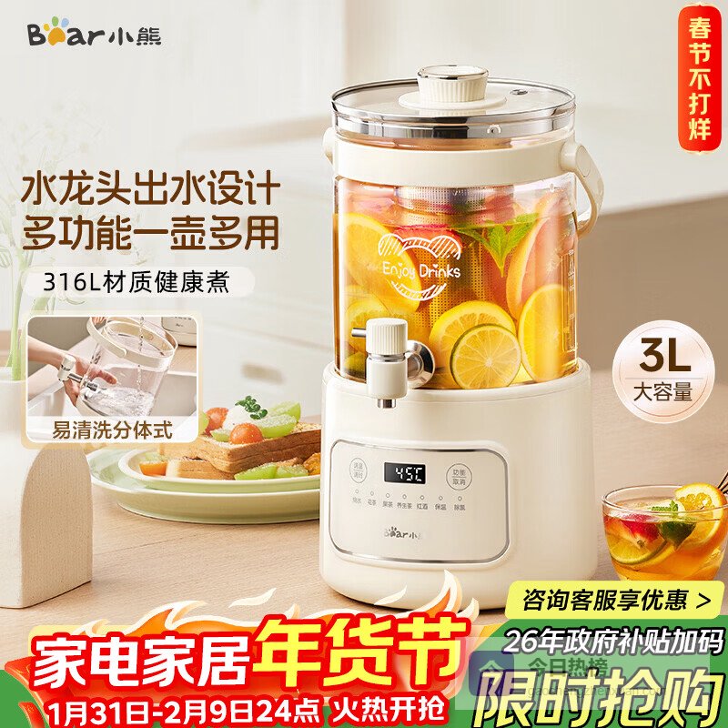 小熊(Bear)养生壶 养生桶花茶桶 水龙头烧水壶煮茶器煮茶壶 玻璃花茶壶恒温电热水壶 3L大容量ZDH-F30F1¥