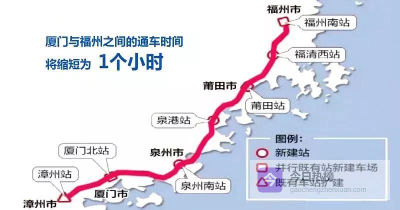 福厦高铁全长277.42公里,自福州南引出,一路向南穿过莆田、泉州,最终抵达厦门,并继续南延至漳州。全线共设7座客运车站:福州南、福清西、莆田、泉港、泉州南、厦门北、漳州。未来,厦门到福州的通达时间将被压缩到1小时以内,“榕厦宁1小时交通圈”“厦漳泉半小时生活圈”将成为日常。