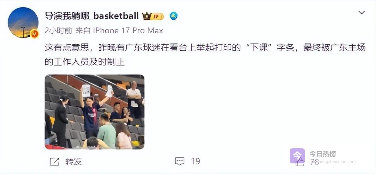 广东男篮最近输多赢少,引发了广东球迷的极大不满。据媒体人“导演我躺哪儿”透露,在广东男篮主场被北京男篮逆转后,现场有广东球迷手举印有“下课”的打印纸。不仅如此,上一轮广东男篮大胜四川男篮后,杜锋在接受采访时,也有现场球迷大喊“杜锋下课”,随后被保安请了出去。这几名球迷的做法,得到了不少广东球迷的支持。