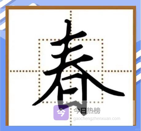 3.5 【 撇捺组合——双向主笔不冲突 】“春”字上下各有一对撇捺,方向相反、力度相等才能撑出“人”字底。横画主动缩短,把舞台让给两翼。