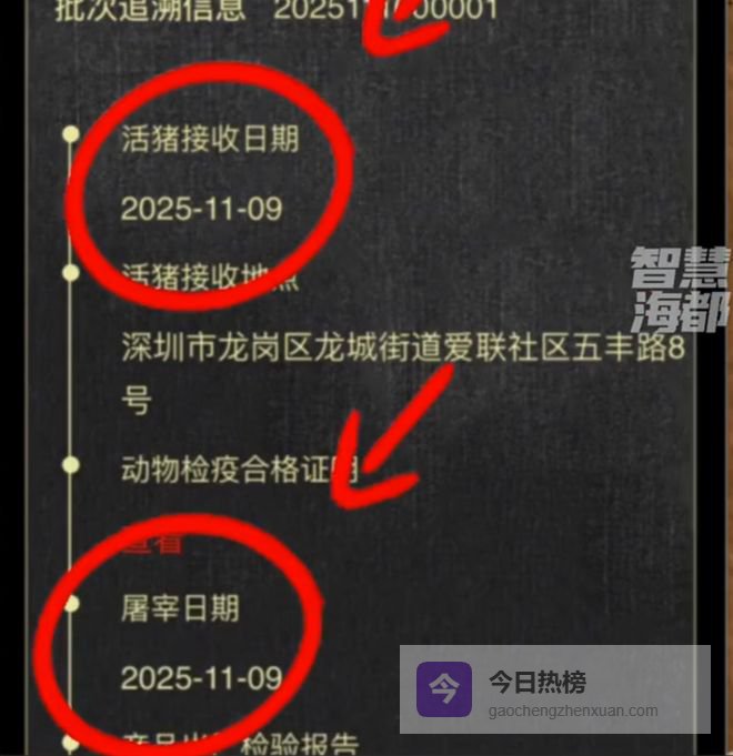 据海峡都市报,3月19日,广东深圳网友姜女士在社交平台发帖称,自己3月18日在深圳山姆会员商店购买了黑猪瘦肉,回家后扫描包装上的二维码,进入“山姆区块链食品安全追溯系统”,发现页面显示的“活猪接收日期”和“屠宰日期”均为2025年11月9日。