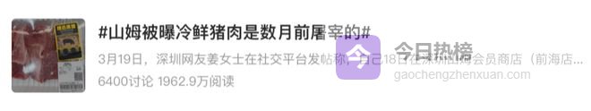 “山姆被曝冷鲜猪肉是数月前屠宰的”