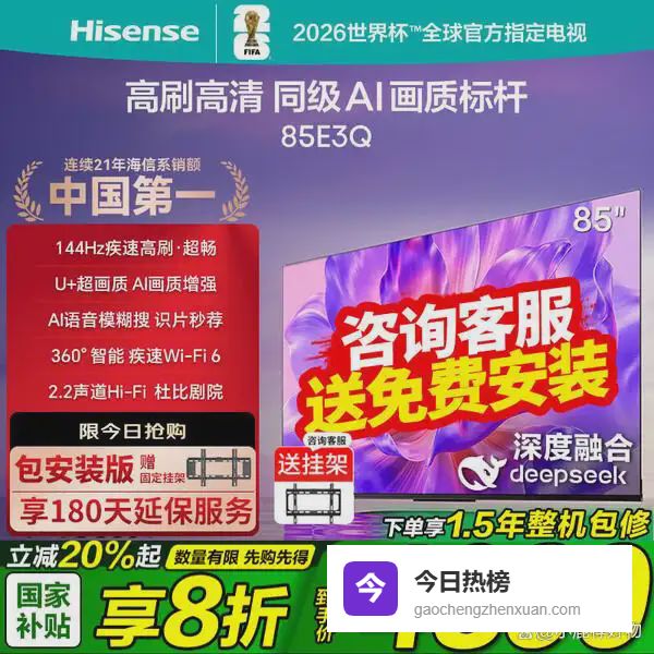 其实,要我说啊,FFALCON和海信各有千秋。FFALCON的优势在于它更注重年轻人的需求,比如高刷新率、游戏优化等等。像是FFALCON 75S595C Ultra,Mini LED背光控光精细,色彩也特别鲜艳,玩游戏看电影都很爽。而且它的灵控系统操作简单,还没广告,用起来心情都好。而海信呢,则在画质调校和音质方面更有经验,毕竟是老牌电视厂商,技术积累深厚。像是海信85E3Q,拥有144Hz高刷屏,配合杜比全景声,视听体验非常棒。