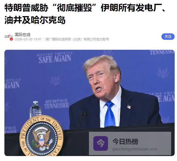 3月30日,特朗普在社交媒体发出强硬威胁,称若霍尔木兹海峡不“开放”,将摧毁伊朗所有发电厂、油井及哈尔克岛,言辞激烈,试图抬高冲突天花板施压伊朗。
