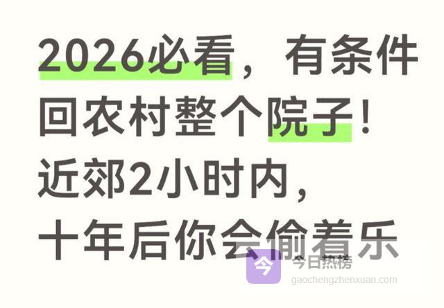 今天这篇长文,我会从现实趋势、政策底线、成本核算、人群分类、选址标准、避坑细节、真实案例、未来价值八个维度,把“回农村整院子”这件事讲得彻彻底底。没有官话、没有套话、没有AI腔,全是大白话、大实话、能直接照着用的干货。