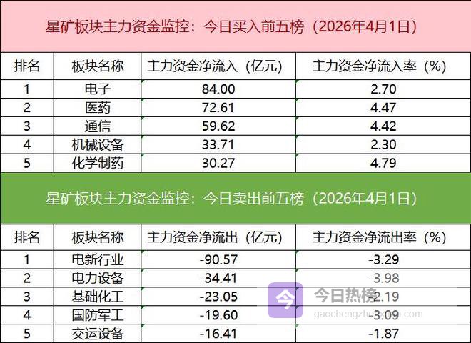 板块资金流出方面,电新行业主力资金净流出居首。