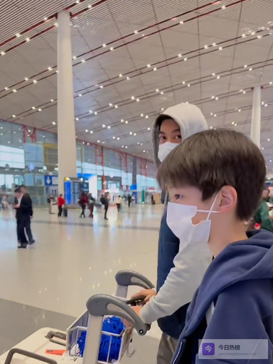 4月2日,有网友在北京首都机场偶遇了杜江、霍思燕和他们的儿子嗯哼。 画面里,杜江走在最前面,穿着灰色连帽卫衣和藏蓝色羽绒马甲,推着行李,口罩遮面。