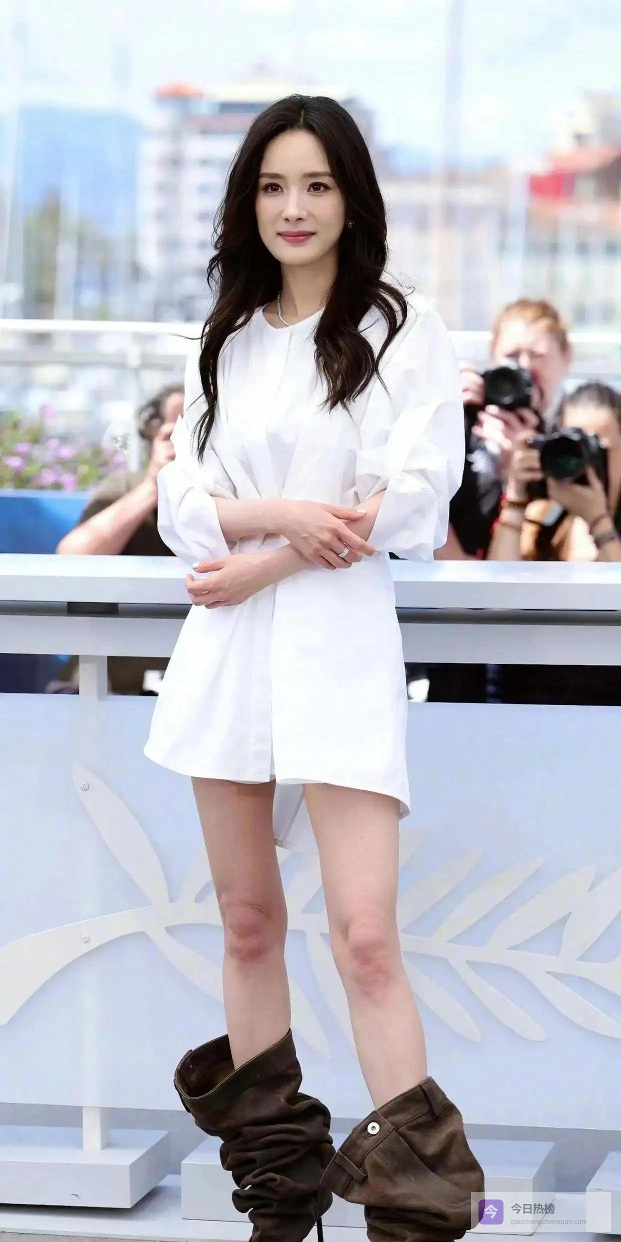 • 网友"幂次方":"幂姐这身材比例绝了!白裙配高跟靴,温柔又性感,太会穿了!"