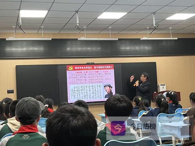 活动现场,四年级的队员们端坐在报告厅,用专注的眼神和热烈的掌声回应着张团长的讲述。而在其他教室,全校其余各中队通过直播方式同步收看。虽然隔着屏幕,但革命先辈们坚如磐石的信念、无畏生死的气概,深深打动了每一位少先队员的心。