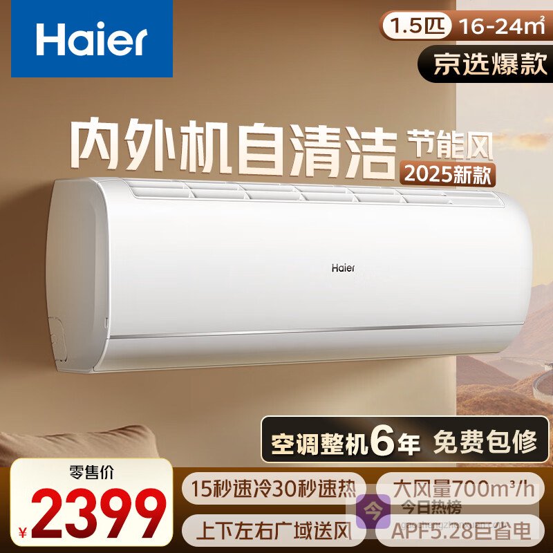 海尔(Haier)净省电空调 小红花套系 新一级能效 1.5匹1匹变频挂机 冷暖自清洁 家用壁挂式客厅卧室 净省电 1匹 AI省电 省电54%¥