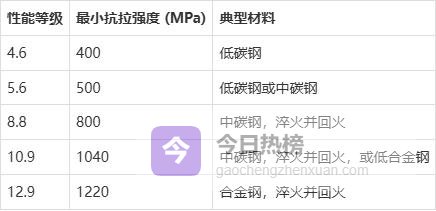 表1:常见螺钉材料性能等级与最小抗拉强度要求(依据GB/T 3098.1)