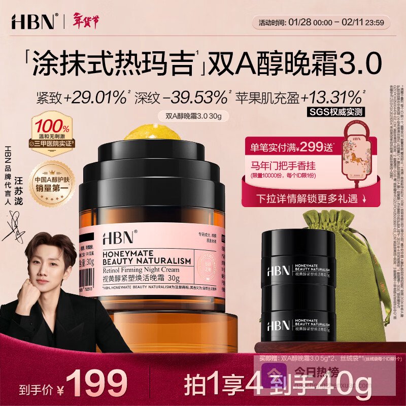 HBN双A醇晚霜3.0抗皱紧致淡纹滋润保湿霜情人节礼物送女友¥