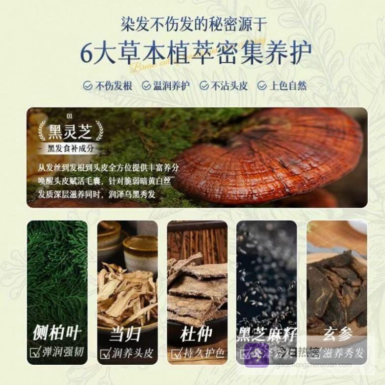发滋然染发剂:主打“五黑”植萃配方(黑芝麻、黑豆等),染发与养发二合一,专为白发人群设计,膏体滋润不滴落。