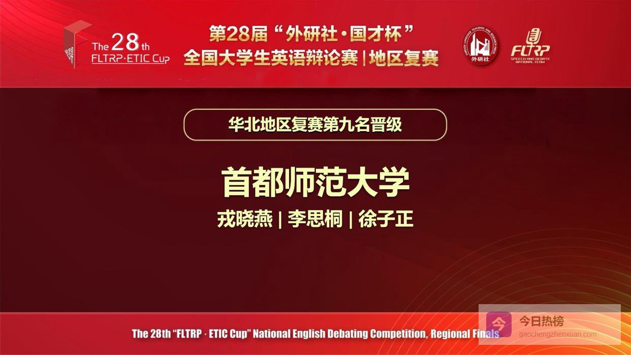 4月10日至11日,由北京外国语大学主办,外语教学与研究出版社、北京外国语大学中国外语测评中心和北京外研在线数字科技有限公司承办的第27届“外研社·国才杯”全国大学生英语辩论赛(华北地区复赛)顺利举行。首都师范大学外国语学院英教系2022级本科生李思桐、英教系2023级本科生徐子正、英文系2024级本科生张楚乔以及英教系2024级本科生朱冬玮代表我校参赛,分别荣获“华北赛区复赛金奖”和“华北赛区复赛银奖”。指导教师戎晓燕获得“优秀指导教师奖”。