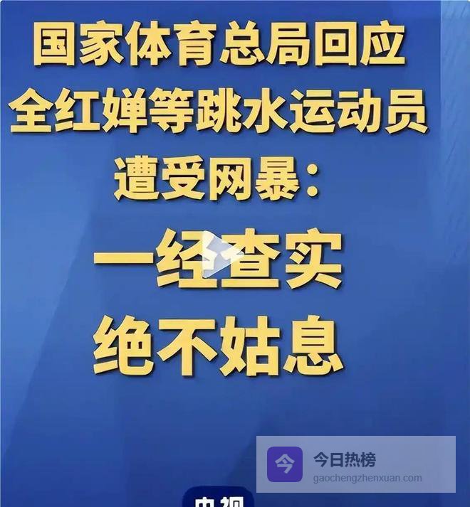 今年4月8日,广东省二沙体育训练中心正式发布公告,针对针对全红婵的网络暴力向公安机关报警;国家体育总局游泳中心第一时间跟进表态,坚决支持全红婵依法维权;体育解说韩乔生也发文力挺,直言心疼这位努力的姑娘,运动员为国争光,不该被这样恶意伤害。