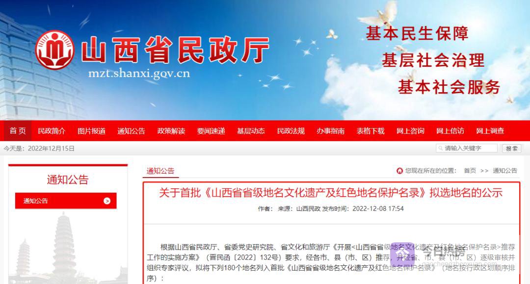 山西省民政厅近日公示首批《山西省省级地名文化遗产及红色地名保护名录》,全省仅百余个地名脱颖而出。陵川县一口气贡献两席——千年古县“陵川”本名与红色村落“赤叶河”同时入围,实现历史文化与红色基因的“同框”保护。