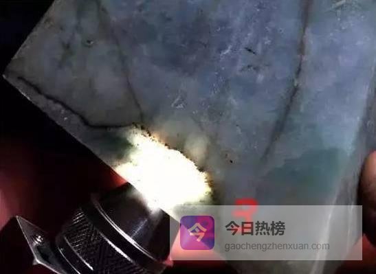 货主满怀期待的原石,切面却像乐高玩具——皮壳、雾层、肉质三条线泾渭分明,中间夹着水沫玉,两侧是砖头料。更绝的是,拼接处几乎找不到胶痕,肉眼只能看到一条笔直的“分界线”。