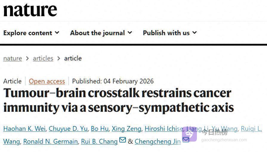 2026年2月发表在《自然》杂志上的一项研究,肺腺癌,这种最常见的肺癌,能像黑客一样入侵你的神经系统。 它通过迷走神经,给你的大脑发送错误指令,让大脑命令身体“保护”肿瘤,反过来打压你自己的免疫系统。 这不是科幻电影,这是正在发生的癌症战争新前线。