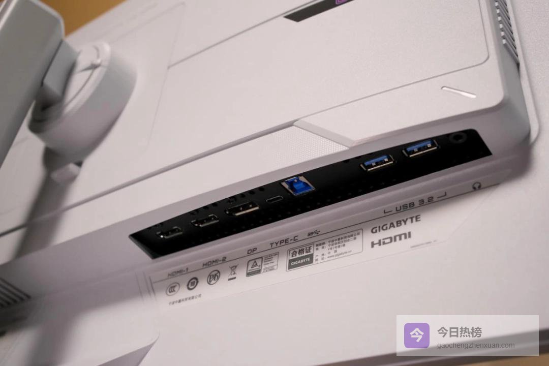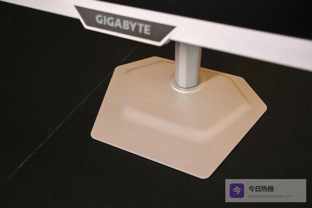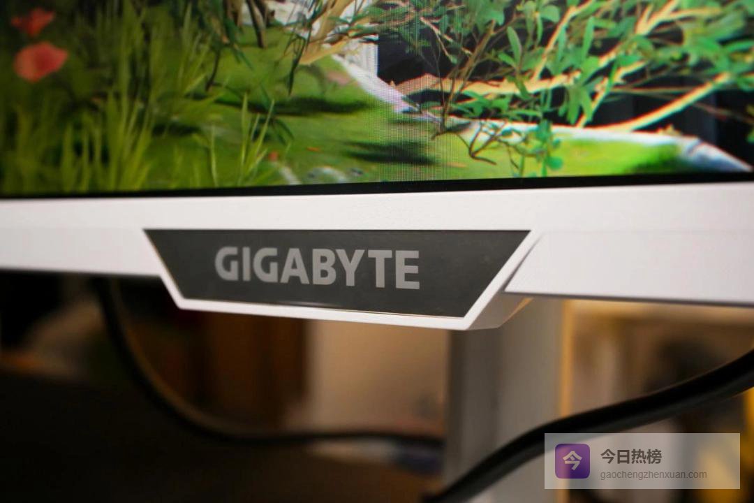 光看外观设计它就已非常讨喜。正面三窄边的边框带来了不错的屏占比,也拉近了游戏画面与玩家的距离,能然你获得极佳的画面沉浸感。纯白色的面板加上表面防滑纹路的处理和中间显眼的技嘉品牌LOGO,也让这台显示器兼具了颜值与辨识度。
