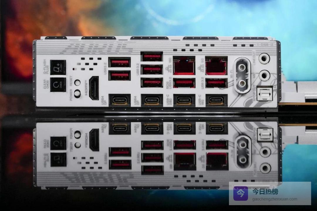I/O面板也带来了新一代的网络、存储和Wi-Fi解决方案。它配备了前置的USB 3.2 Gen 2x2 Type-C接口,支持65W充电,其余两个USB4 Type-C接口,则均能提供高达40 Gbps的极速且稳定的传输速率,可显著提升视频剪辑、大文件传输及数据密集型任务的处理能力。万兆+5千兆网卡,可提供极快的传输速度,确保在各种状态的网络环境下,都能获得稳定的传输效率。
