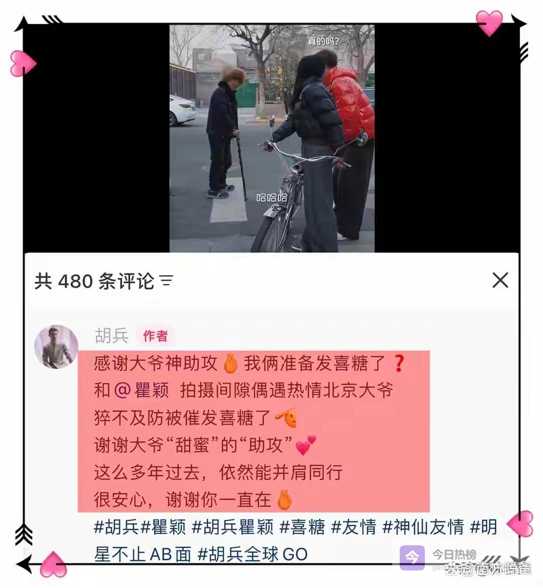 事情是这样的,初春街头,胡兵和瞿颖这对三十年的老友并肩而行,气质依旧超绝。一位路过的大爷,冷不丁抛出一句灵魂拷问:“照相不发喜糖?”就这短短六个字,瞬间点燃网络,冲上热搜!